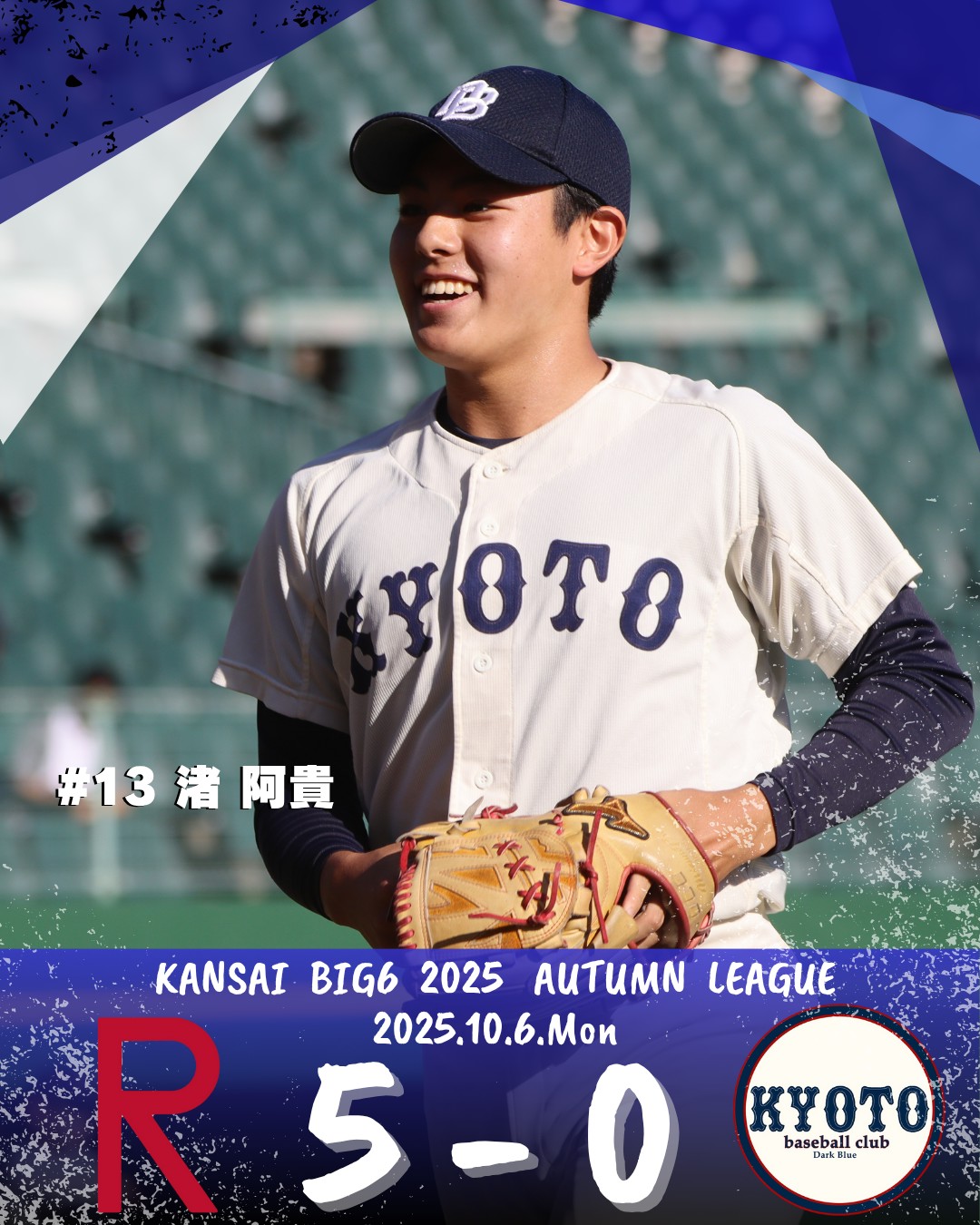 10月6日にほっともっとフィールド神戸で行われた令和7年度関西学生野球連盟秋季リーグ戦 vs 立命館大学1回戦は、5-0で敗北いたしました。試合の様子はこちらから、秋季リーグ戦ページはこちらからご覧ください。